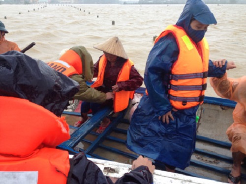 Một trường hợp khác may mắn hơn là sản phụ Vũ Thị Việt Trinh (23 tuổi) ngụ xã Duy Tân, huyện Duy Xuyên, Quảng Nam ngày 16/12 đã được canô công an huyện Đại Lộc đưa đi sinh giữa dòng nước lũ.