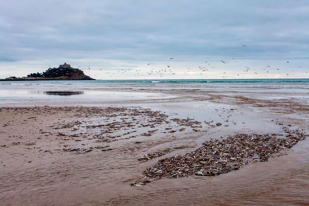 Vừa qua người dân tại Anh đã chứng kiến cảnh tượng vô cùng kỳ lạ xảy ra trên bờ biển Marazion ở Cornwall. Xác của hàng ngàn con cá thu nhỏ đã phủ kín cả bờ biển không rõ lý do khiến nhiều người hoang mang. Điều đáng nói là không con vật nào buồn ăn hay động đến xác của những con cá này.