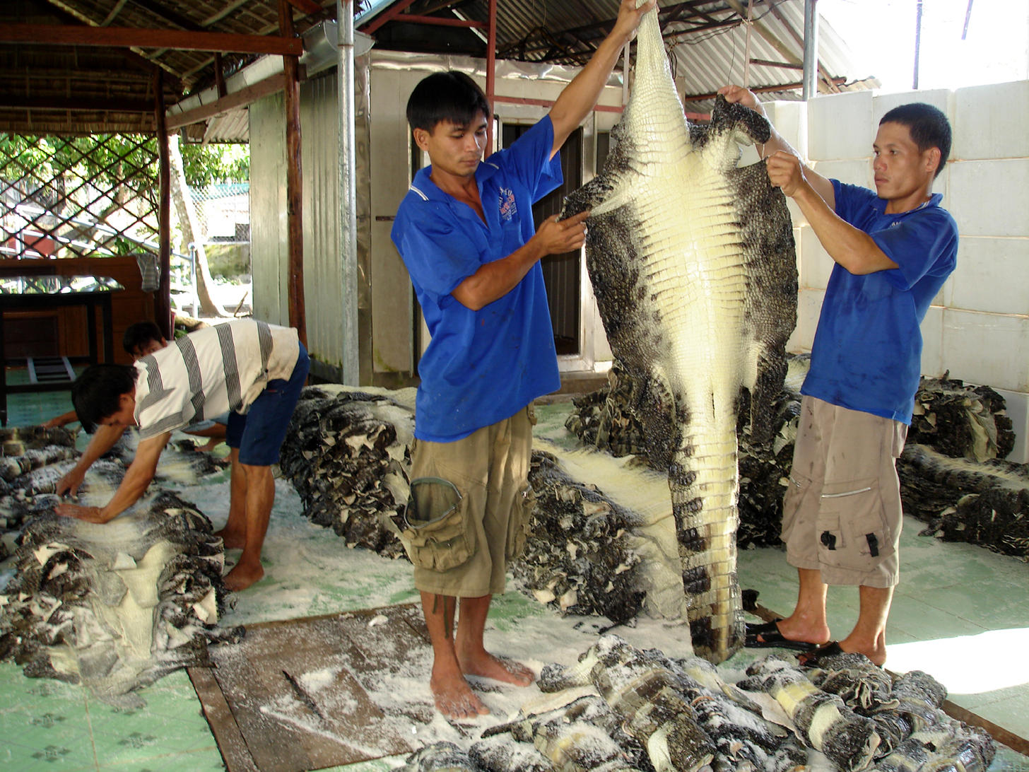 Cá sấu đã bị lột da trong lúc chúng còn sống, và rồi da được dùng để chế tạo các sản phẩm được bán tại các tiệm thời trang nổi tiếng ở Âu Châu, như Louis Vuitton.