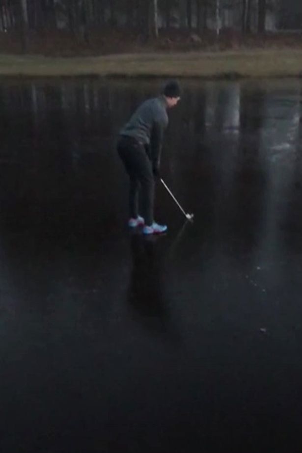 Đoạn video trên cho thấy một người chơi golf trên mặt hồ đóng băng và có một cái kết không thể "buốt giá" hơn.