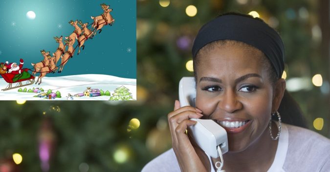 Đây là đêm Giáng sinh cuối cùng của phu nhân Michelle Obama với vai trò là một Đệ nhất phu nhân.Tại đêm giáng sinh,phu nhân Michelle Obama đã có một hành động vô cùng bất ngờ.Bà đã trả lời điện thoại và giúp những đứa trẻ đi tìm ông già Noel.