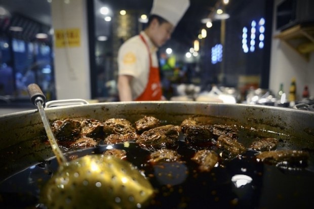 Món đầu thỏ được nấu trong nước sốt cay. Ảnh: AFP .