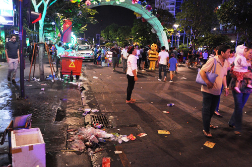 Tối 31.12.2016 hàng ngàn người đổ về khu vực phố đi bộ Nguyễn Huệ để tham gia chương trình đếm ngược giữa thời khắc chuyển giao năm cũ 2016 sang năm mới 2017. Nhiều người mang theo đồ ăn, nước uống sau khi sử dụng xong “tiện tay” vứt ngay trên phố đi bộ. Khi màn chào đón năm mới 2017 kết thúc, mọi người ra về, khu vực phố đi bộ rác thải nằm khắp nơi.