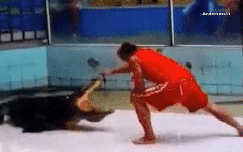 Đoạn video do một khán giả có mặt trong buổi biểu diễn quay bằng điện thoại vào ngày thứ Sáu tuần trước (30/12) cho thấy huấn luyện viên Anusak Salangam (47 tuổi), người mặc bộ quần áo màu đỏ và không đi giày, đã đứng trước mặt một con cá sấu khổng lồ, sau đó, anh liên tục chìa tay vào mồm con vật hung dữ.