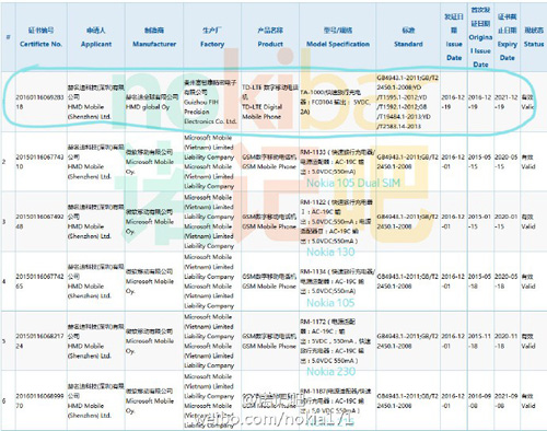 Nokia là thương hiệu điện thoại đang rất được nhiều người kỳ vọng sẽ trở lại mạnh mẽ trong năm 2017. Sau nhiều tin đồn về chiếc smartphone của Nokia thì sắp tới hãng này sẽ cho ra mắt thị trường mẫu điện thoại giá rẻ. Nokia TA-1000 là mẫu điện thoại vừa được kiểm duyệt tại Trung Quốc.