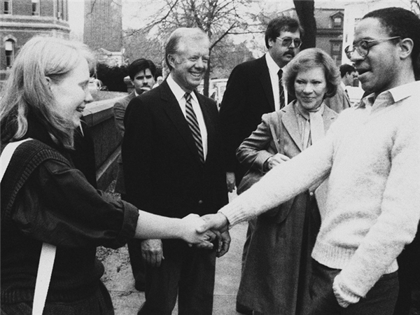 Amy Carter, 17 tuổi, chụp cùng bố mẹ vào năm 1984 trong lúc đi tham quan Brown