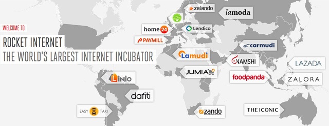 Rocket Internet được xem là “vườn ươm” startup đã thành lập tới 100 startup tại 110 quốc gia với tổng cộng 36.000 nhân viên, hoạt động trong đủ mọi lĩnh vực từ cung ứng thực phẩm, quần áo cho đến xe hơi cũ hay thậm chí cả dịch vụ giặt là.