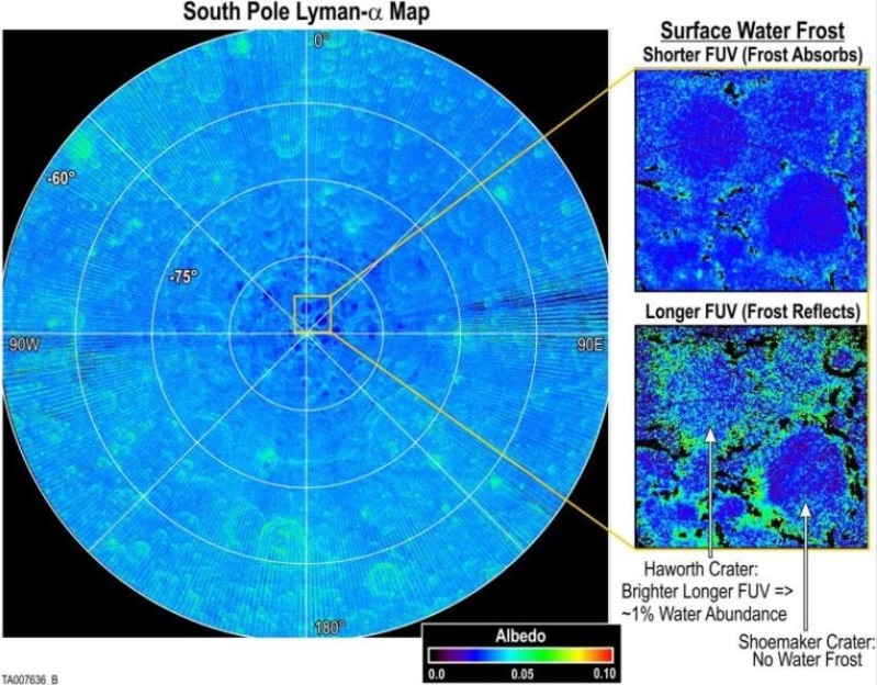 Kết quả chụp chiếu miệng núi lửa Cabeus ở cực Nam mặt trăng cho thấy có sự xuất hiện của phân tử nước.