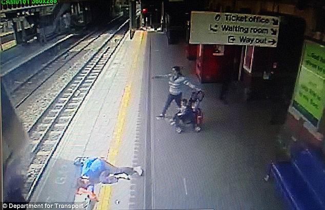Cô ngã xuống sân ga sau khi rút được bàn tay ra khỏi cửa tàu.