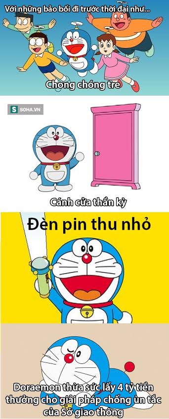 Mượn chú mèo máy Doraemon bảo bối, hay sử dụng các phương tiện bay... là một trong những giải pháp khá hài hước của cư dân mạng đưa ra nhằm giúp cải thiện tình trạng ùn tắc giao thông hiện nay ở Hà Nội.