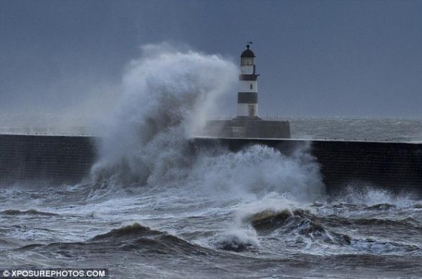 Gió mạnh tạo nên cột sóng khổng lồ tại bờ biển khu vực Đông Bắc nước Anh