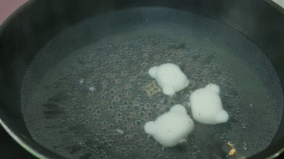 - Thả từng viên bánh vào nồi nước sôi. Trong khi luộc bánh bạn chú ý không dùng thìa hay đũa chạm vào vì sẽ rất dễ làm vỡ bánh. Khi bánh nổi lên là lúc bánh đã chín tới, bạn vớt ra để nguội.