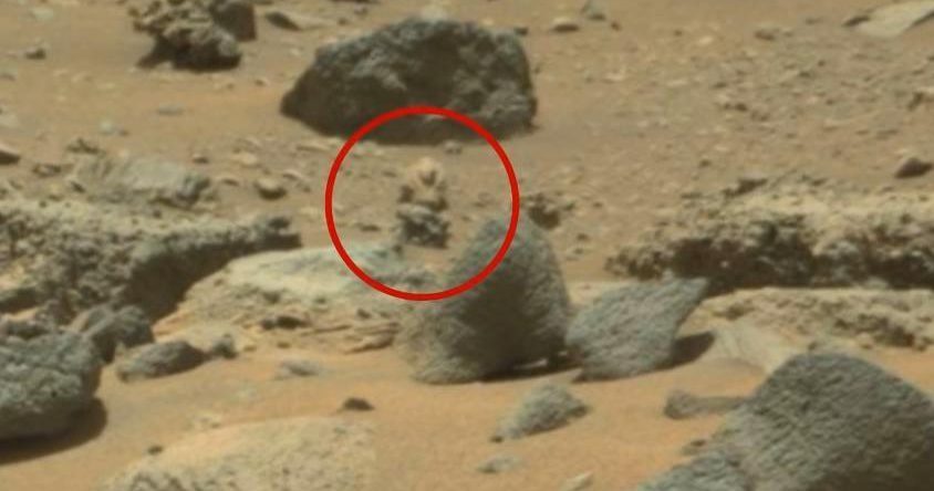 Theo báo Anh Mirror, các tay thợ săn người ngoài hành tinh mô tả, người lính cổ đại trên sao Hỏa mặc bộ đồ không gian và cầm vũ khí trong bức ảnh mà robot thăm dò Curiosity của NASA chụp được. Một số người tin rằng, người lính cổ đại trên đã bị hóa đá.