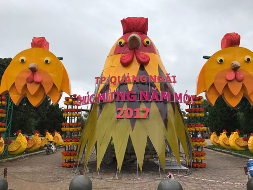Trong khi người dân vẫn còn nghèo và quá khổ .Tỉnh Quảng Ngãi xin Chính phủ gạo cứu trợ dân nghèo sau trận lũ lụt khiến người dân khốn khổ.Thì Thành phố Quảng Ngãi chịu chi hàng tỷ đồng để trang trí hình con gà đón tết cổ truyền Đinh Dậu.