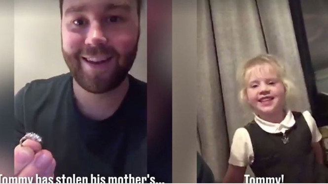 Câu chuyện của cô bé được bố ghi hình và đăng trên mạng xã hội. Ông bố kể lại câu chuyện con gái Millie được bạn trai ở trường tên Tommy cầu hôn và tặng chiếc nhẫn bằng kim cương thật.