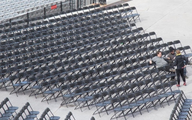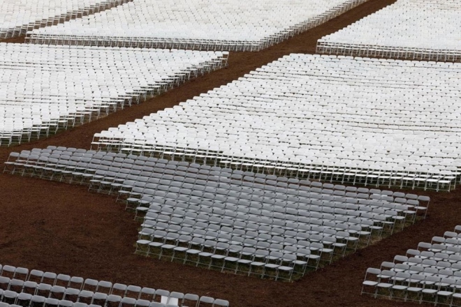 Những hàng ghế dài được sắp xếp trên bãi cỏ Tòa nhà Quốc hội chỉ chờ đến giây phút mở màn lễ nhậm chức tổng thống Mỹ. Ảnh: Newsday