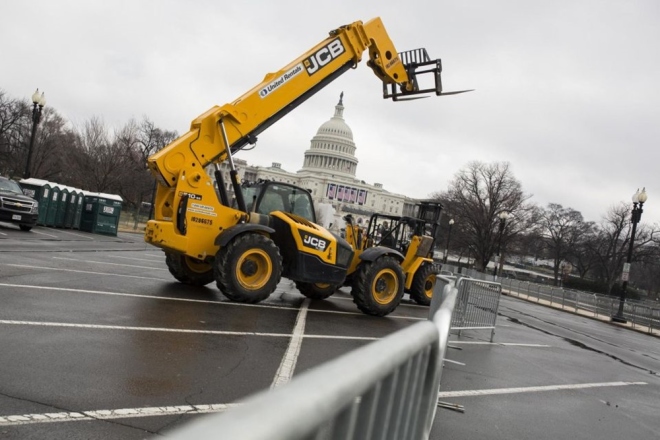Xe nâng đỗ trước hàng rào an ninh gần Tòa nhà Quốc hội hôm 17/1.
