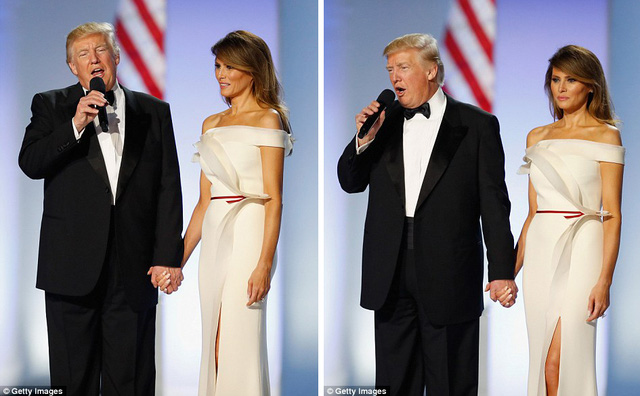 Trong buổi tiệc khiêu vũ tối 20/1, tân Đệ nhất phu nhân Mỹ Melania Trump xuất hiện với trang phục vô cùng quyến rũ. Bà đã nhận được nhiều lời khen ngợi khi lựa chọn 2 bộ trang phục vừa thanh lịch, tôn trọn vóc dáng trong ngày nhậm chức của chồng. Chúng ta xem loạt ảnh bà mặc đầm trắng hở vai khiêu vũ cùng chồng.