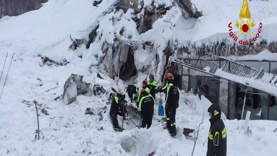 Vụ lở tuyết xảy ra ở dãy núi Gran Sasso thuộc khu vực Abruzzo, miền Trung nước Ý theo sau một vài trận động đất. Ít nhất 4 người được xác nhận đã chết và khoảng 20 người mất tích, bao gồm trẻ em.