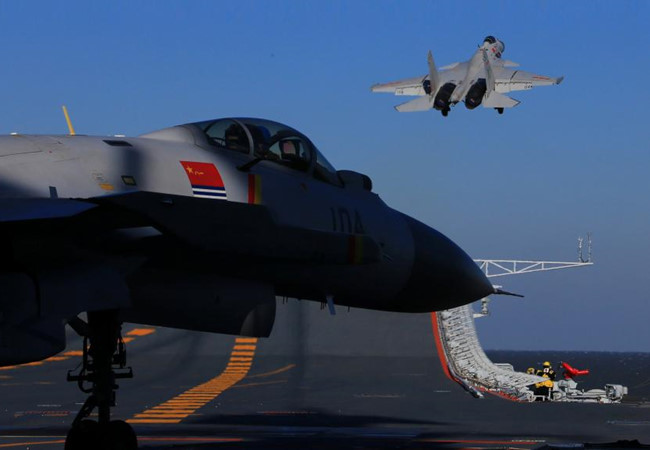 Máy bay J-15 xuất kích từ tàu sân bay Liêu Ninh của Trung Quốc
