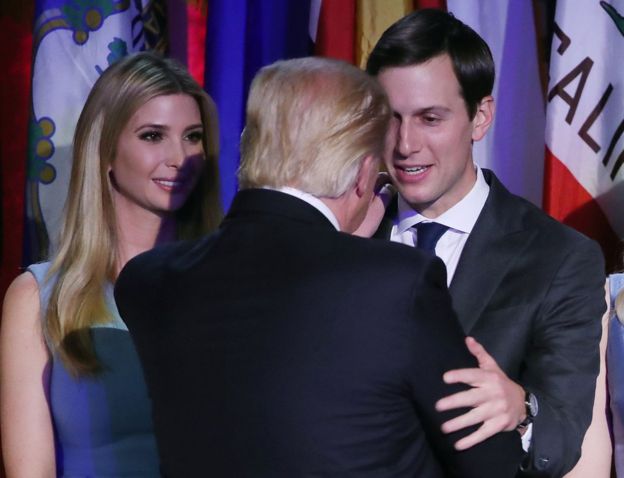 Ông Trump đă bổ nhiệm con rể, nhà phát triển bất động sản Jared Kushner, làm cố vấn cấp cao. Một số người nói rằng việc bổ nhiệm này khiến Kushner, 36 tuổi, có thể trở thành người con rể tổng thống quyền lịch nhất trong lịch sử Mỹ.