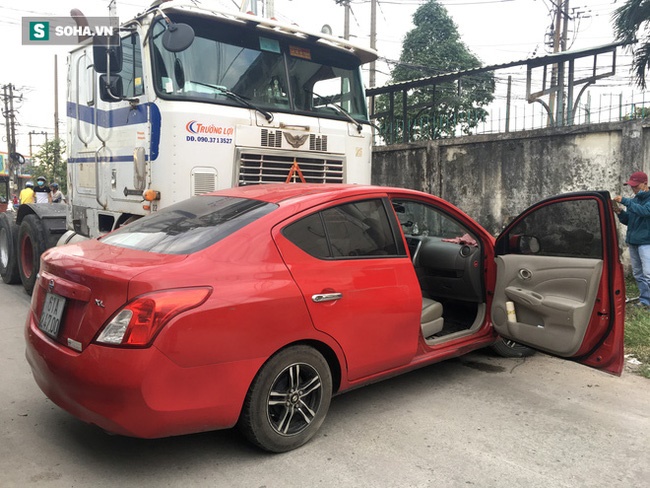 Những người trong xế hộp đã có một trải nghiệm hú hồn. Chiếc xe sedan đã bị container húc đi xa tới hàng chục mét. Những người trong xe may mắn không gặp vấn đề gì nghiêm trọng.
