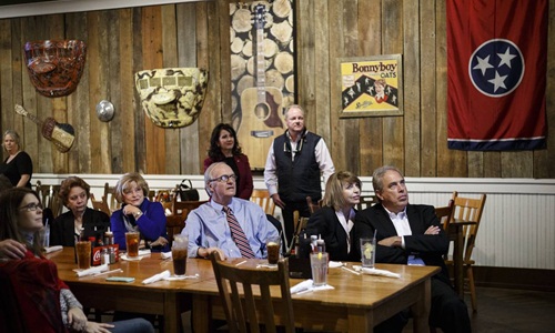 Người dân xem lễ nhậm chức tổng thống Mỹ tại một buổi tiệc do đảng Cộng hòa ở hạt Hamilton tổ chức tại thành phố Chattanooga, bang Tennessee. Ảnh: AP