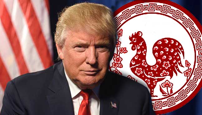 Ông Trump là người tuổi Tuất, mang mệnh Thổ, hợp với mệnh Hỏa của năm Đinh Dậu. Do đó, nhà phong thủy Hong Kong Thierry Chow dự đoán ông Trump sẽ có một năm mới, sự khởi đầu trong cương vị mới một cách thuận lợi.