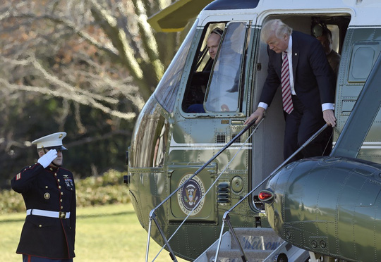 Ông Trump bước xuống từ chiếc Air Force One hôm 26-1. Ảnh: AP