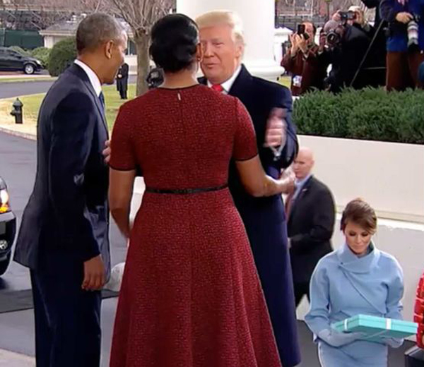 Trong khi tất cả những tổng thống tiền nhiệm đều đứng chờ vợ và dẫn họ lên cầu thang, ông Trump dường như đã phá vỡ truyền thống ấy. Video được quay trong lễ nhậm chức trước cho thấy cựu tổng thống George W. Bush đứng chờ vợ, bà Laura, trước khi bước lên chào hỏi nhà Clinton, và cựu tổng thống Obama cũng làm điều tương tự trong lễ nhậm chức năm 2009.