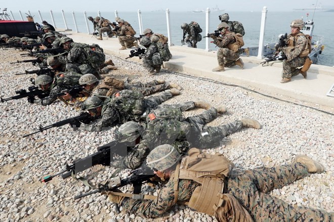 Quân đội Hàn Quốc và Mỹ tham gia cuộc tập trận chung ở Incheon, phía tây thủ đô Seoul ngày 8/9/2016. (Nguồn: Yonhap/TTXVN)