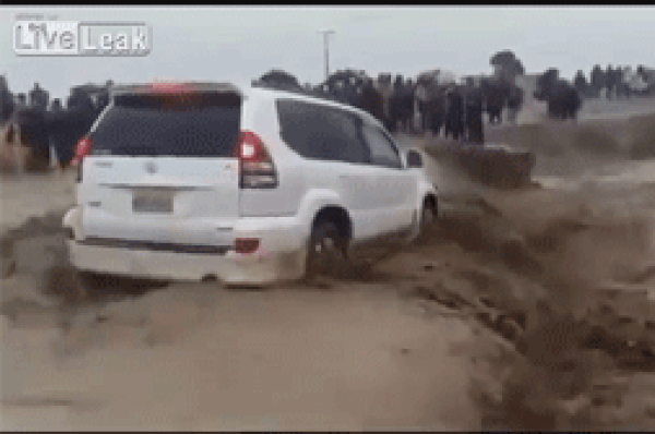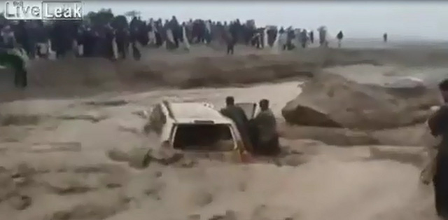 Đoạn video ghi lại cảnh một chiếc SUV Toyota Land Cruiser Prado bị nước lũ chảy cuồn cuộn nhấn chìm tại tỉnh Chaman Balochistan, Pakistan, đã lập tức thu hút sự chú ý trên mạng. Đoạn video này do một người đứng trên bờ quay lại bằng điện thoại.