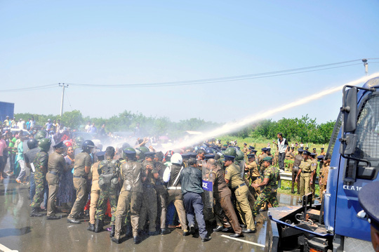 Cảnh sát đụng độ với người biểu tình ở Mirijjawila - Sri Lanka hôm 7-1 Ảnh: Reuters
