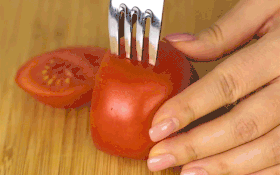 1. Sử dụng một chiếc dĩa để cắt cà chua.