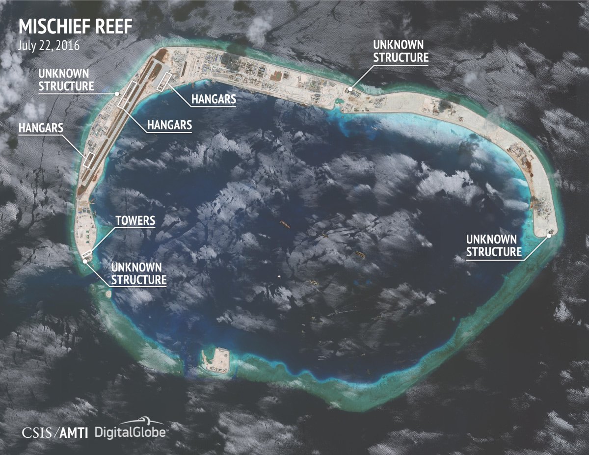 Cận cảnh Đá Vành Khăn đã bị Trung Quốc bồi lấp, xây đảo nhân tạo trái phép với đường băng và các công trình quân sự kiên cố