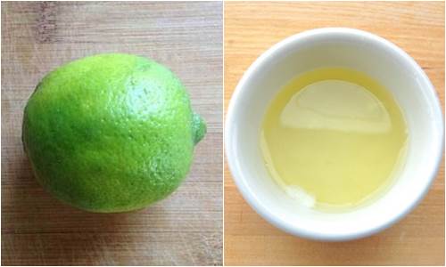 – Vắt lấy phần nước cốt chanh tươi từ 1 quả chanh cho vào bát lòng trắng trứng gà đã được đánh tan và dùng thì đánh đều lên là xong.