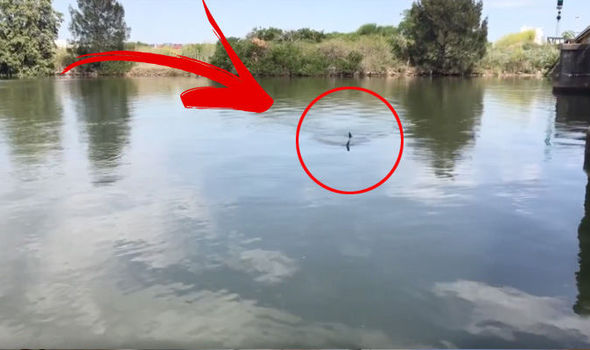 Đó chính là một cá mập trắng con, đang ở cách đại dương tới gần 10km. Có chuyên gia cho rằng mẹ của con cá mập cũng đang bơi gần đó.