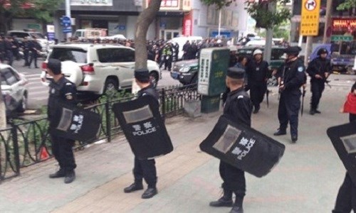 Cảnh sát được triển khai tại hiện trường một vụ tấn công ở Khu tự trị Tân Cương, Trung Quốc. Ảnh: Reuters.