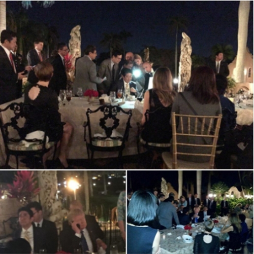 Một vị khách có tên Richard DeAgazio cuối tuần trước đăng lên Facebook bức ảnh ghi lại thời điểm Tổng thống Mỹ Donald Trump và Thủ tướng Nhật Shinzo Abe nhận được tin Triều Tiên thử tên lửa trong khi hai ông đang dùng bữa tối.