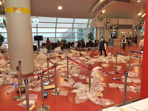 Hình ảnh sân bay Jeju được ghi nhận vào tháng 10 năm ngoái. Sau khi tung hoành khắp các cửa hàng miễn thuế tại sân bay Jeju, Hàn Quốc, du khách Trung Quốc thản nhiên xả rác khắp sân bay.