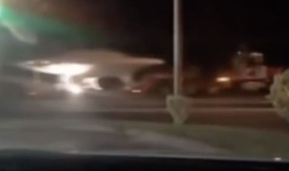 Ảnh cắt từ video cho thấy vật thể lạ hình tam giác mà tài xế xe tải thấy quân đội hộ tống. Ảnh Express.