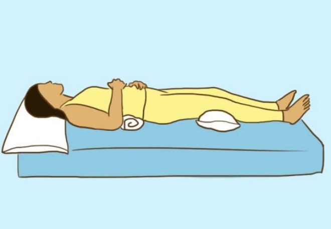 Người đau cổ nên dùng một chiếc khăn nhỏ cuộn lại và đặt ngay dưới cổ để cố định vùng cổ khi bạn say giấc.