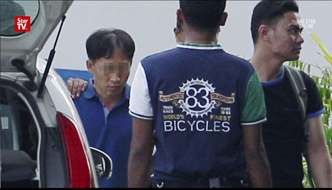 Ảnh chụp màn hình video của The Star thời điểm cảnh sát bắt giữ nghi phạm Triều Tiên Ri Jong-cholStar TV