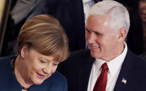 Thủ tướng Đức Angela Merkel và Phó Tổng thống Mỹ Mike Pence tại Hội nghị An ninh Munich diễn ra từ ngày 17-19/2/2017. Ảnh: AP.