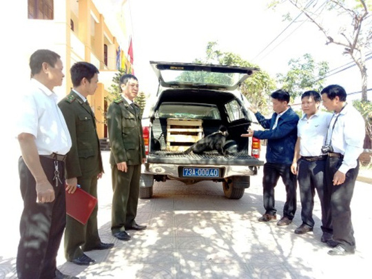 Trước đó, khoảng 20 giờ vào ngày 17/2, khi đi trên đường Hồ Chí Minh đoạn qua địa phận thôn Mỹ Đức (xã Sơn Thủy, huyện Lệ Thủy), anh Nguyễn Trường Khánh, trú ở phường Đức Ninh Đông (TP Đồng Hới) đã phát hiện 1 cá thể Voọc Hà Tĩnh quý hiếm đang mang dây xích trên cỏ chạy dọc theo tuyến đường.