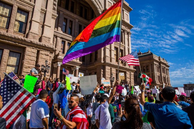 Cuộc biểu tình "Một ngày Không có Người nhập cư" ở Austin, bang Texas ngày 16-2 - Ảnh: AFP