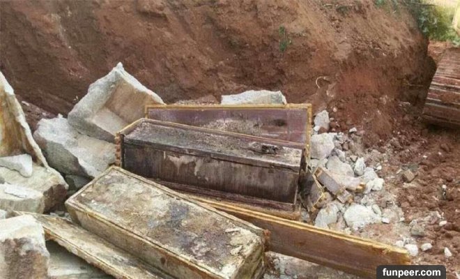 Thế nhưng khi vừa đào hết lớp đất đá để lộ quan tài bên trong, nhiều người đã nhận thấy điều bất thường. Những chiếc quan tài đều được bao bọc bởi một lớp đá hiếm. Không ai có thể nhấc được những chiếc quan tài này lên cho dù đã cố hết sức, thậm chí ông Trương phải dùng máy cẩu nhiều lần mà vẫn không thành công.