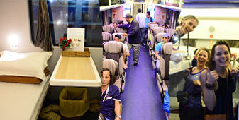 Toa xe ghế ngồi với thiết bị mới, có nhiều tiện ích phục vụ hành khách như: khoang để hành lý thiết kế rộng rãi; có thể điều chỉnh ghế thành giường ngủ, có thiết bị để chân phía trước và giá đỡ chân khi hành khách nghỉ ngơi.