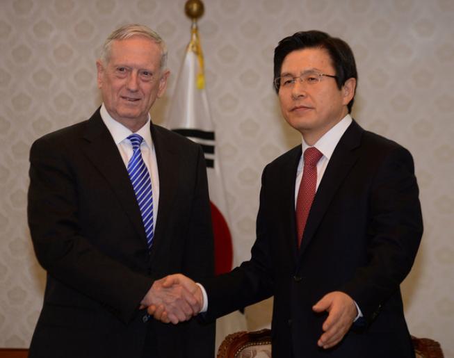 Tân Bộ trưởng Quốc phòng Mỹ James Mattis (trái) chọn Hàn Quốc làm nước đến thăm đầu tiên sau khi nhậm chức (ảnh tư liệu)
