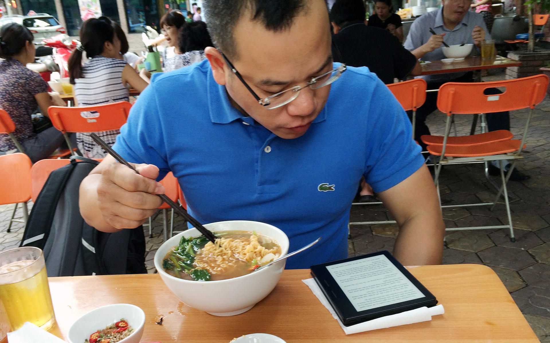 Trước đây, chúng ta thường nói khi ăn cơm xem ti vi không tốt cho tiêu hóa, nay dùng điện thoại càng không tốt. Bởi vì điện thoại màn hình nhỏ, bạn sẽ cần phải tập trung thị lực nhiều, hơn nữa nó sẽ làm tổn thương mắt. Đặc biệt, bệnh dạ dày của các bạn trẻ hiện nay phần lớn có liên quan đến việc dùng điện thoại.